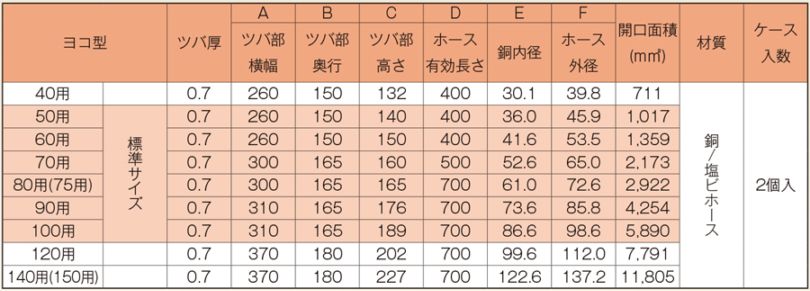 ダモ銅改修ドレン ヨコ型の特長